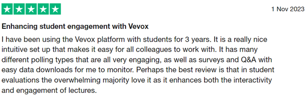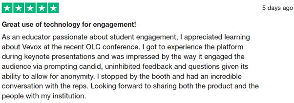 All Vevox Trustpilot Reviews sorted by most recent...