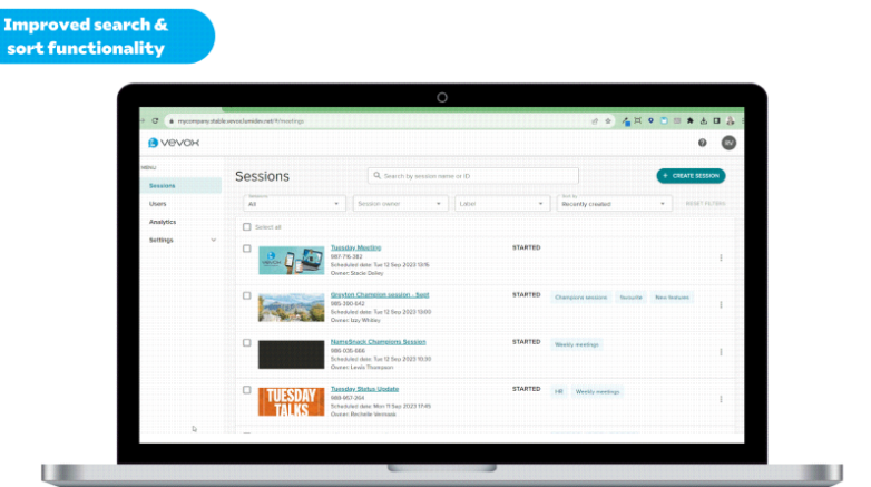 We’ve made some changes to the way you manage sessions in your Vevox dashboard, that will vastly streamline the process. Finding a session out of a long list was previously something that could take a while to do, however these improvements will now make this a simple, quick and easy task!