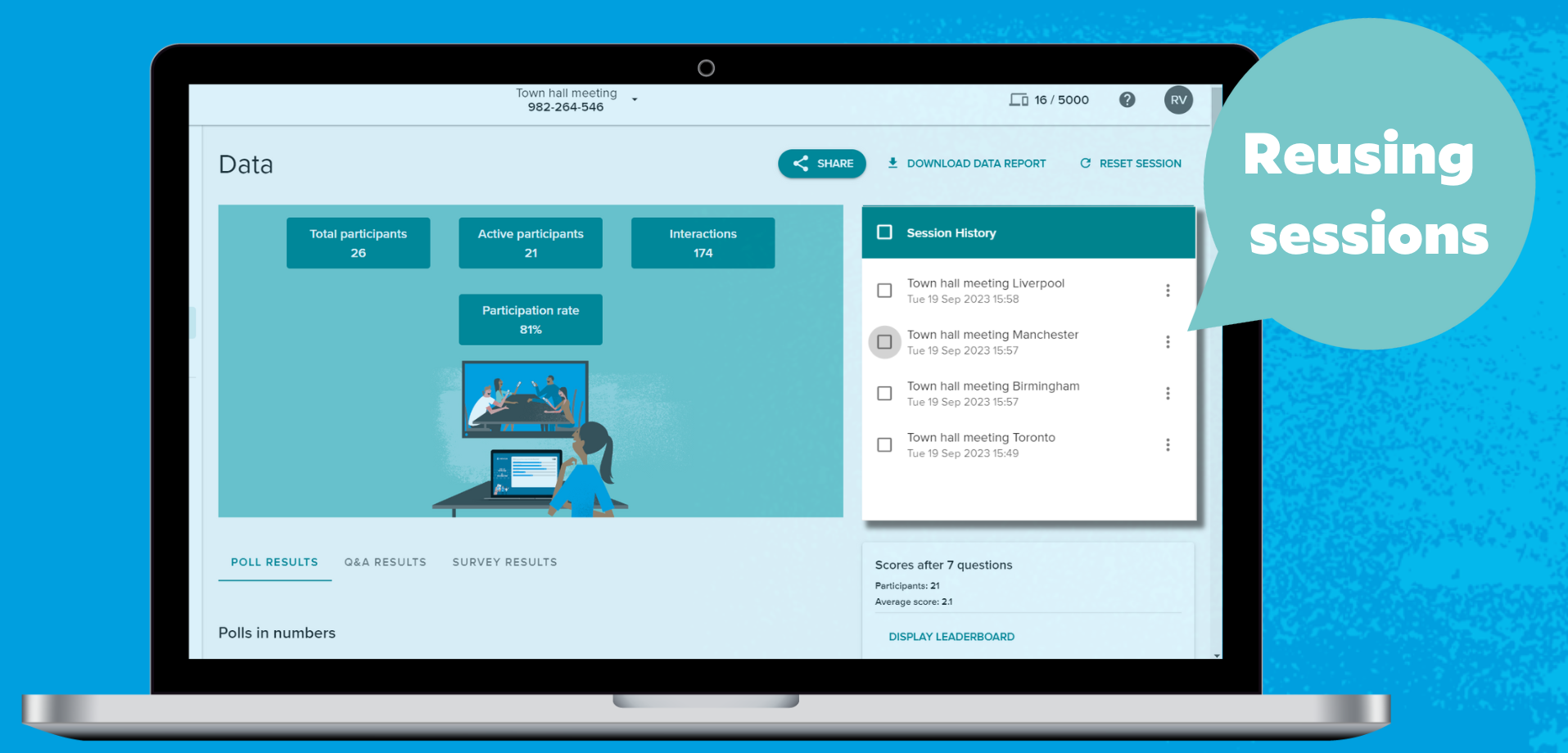 You will now be able to reuse your Vevox sessions again and again – without the need for duplication – meaning there will be no worry about losing old data, you will be able to archive data and restart the same session afresh.